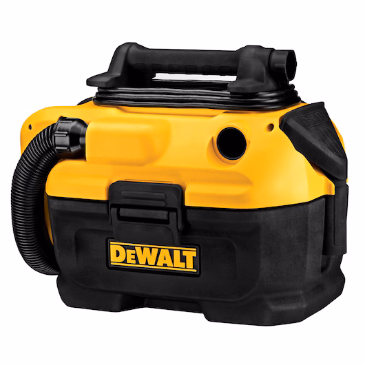 Go battery powered or outlet powered with the DEWALT DCV581H Wet-Dry Vacuum. It uses a 20V MAX* battery (sold separately) - or you can plug it in to an AC outlet. This DEWALT vacuum has the capacity to vacuum 2 gallons of wet or dry debris. The integrated flexible, heavy-duty 5 ft. hose is ideal for tough worksite conditions and has the option to attach a crevice tool or wide-nozzle tool (included). This unit comes with a filter that can be rinsed and reused.